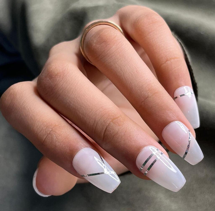 Are you looking to buy premium press on nails online in India ? Then take a look on our Milky White short coffin fake nails.
